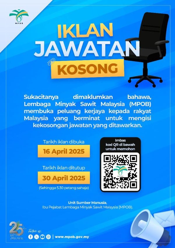 Iklan Kini Jawatan Kosong Lembaga Minyak Sawit Malaysia (MPOB) Klik Jawatan Disini Like serta Ikut Facebook Kami, follow Chanel WhatsApp Jawatan Kosong & Telegram Portal SPA9 untuk capaian pantas kekosongan jawatan daripada kami sekarang.