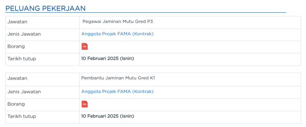 Iklan Kini Jawatan Kosong Lembaga Pemasaran Pertanian Persekutuan (FAMA)