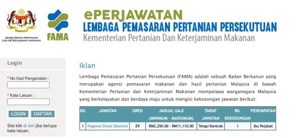 Iklan Kini Jawatan Kosong Lembaga Pemasaran Pertanian Persekutuan (FAMA) Like serta Ikut Facebook Kami, follow Chanel WhatsApp Jawatan Kosong & Telegram Portal SPA9 untuk capaian pantas kekosongan jawatan daripada kami sekarang. Klik Iklan Disini