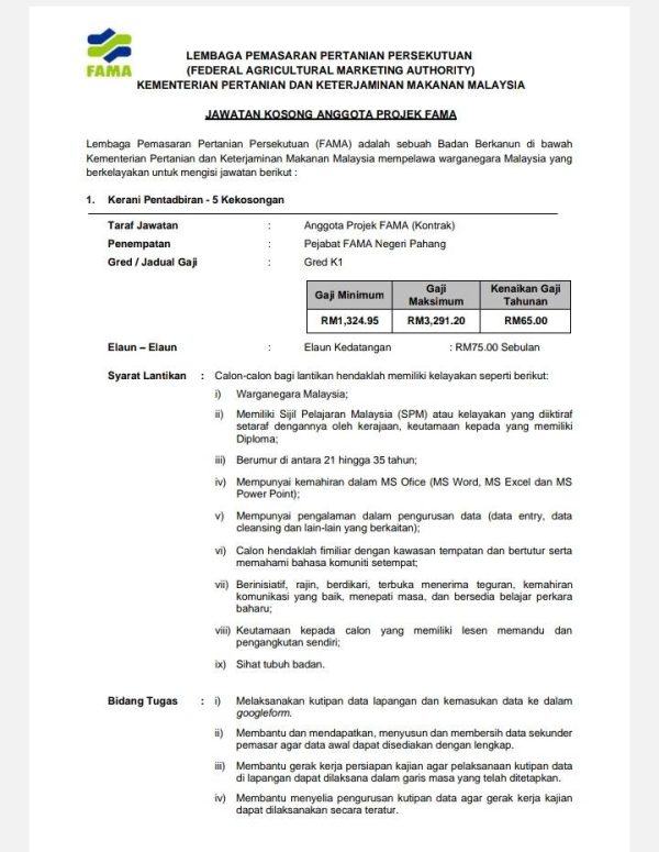 IKlan Kini Jawatan Kosong Lembaga Pemasaran Pertanian Persekutuan Klik Iklan Jawatan Like serta Ikut Facebook Kami, follow Chanel WhatsApp Jawatan Kosong & Telegram Portal SPA9 untuk capaian pantas kekosongan jawatan daripada kami sekarang.