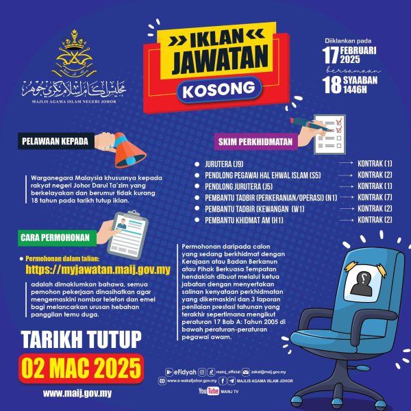 Iklan Kini Jawatan Kosong Majlis Agama Islam Negeri Johor (MAINJ) Like serta Ikut Facebook Kami, follow Chanel WhatsApp Jawatan Kosong & Telegram Portal SPA9 untuk capaian pantas kekosongan jawatan daripada kami sekarang. Klik Jawatan Disini
