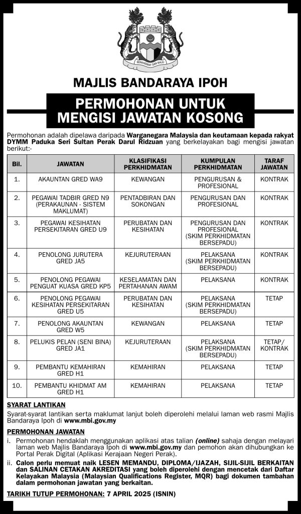 Iklan Kini Jawatan Kosong Majlis Bandaraya Ipoh Like serta Ikut Facebook Kami, follow Chanel WhatsApp Jawatan Kosong & Telegram Portal SPA9 untuk capaian pantas kekosongan jawatan daripada kami sekarang.