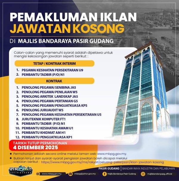 Iklan Kini Jawatan Kosong Majlis Bandaraya Pasir Gudang Like serta Ikut Facebook Kami, follow Chanel WhatsApp Jawatan Kosong & Telegram Portal SPA9 untuk capaian pantas kekosongan jawatan daripada kami sekarang. Klik Iklan Jawatan