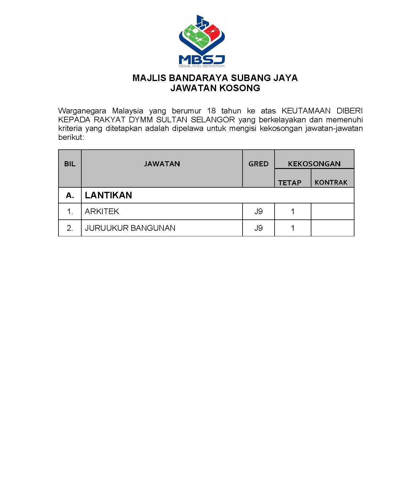 Iklan Kini Jawatan Kosong Majlis Bandaraya Subang Jaya (MBSJ) Like serta Ikut Facebook Kami, follow Chanel WhatsApp Jawatan Kosong & Telegram Portal SPA9 untuk capaian pantas kekosongan jawatan daripada kami sekarang. Klik Iklan Jawatan