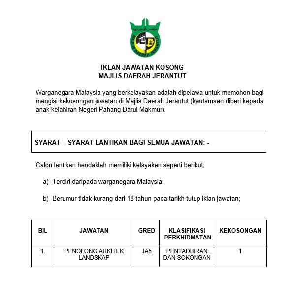 Iklan Kini Jawatan Kosong Majlis Daerah Jerantut Klik Jawatan Disini Like serta Ikut Facebook Kami, follow Chanel WhatsApp Jawatan Kosong & Telegram Portal SPA9 untuk capaian pantas kekosongan jawatan daripada kami sekarang.