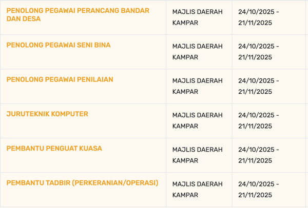 Iklan Kini Jawatan Kosong Majlis Daerah Kampar Like serta Ikut Facebook Kami, follow Chanel WhatsApp Jawatan Kosong & Telegram Portal SPA9 untuk capaian pantas kekosongan jawatan daripada kami sekarang. Klik Iklan Jawatan