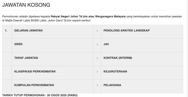 Iklan Kini Jawatan Kosong Majlis Daerah Labis Like serta Ikut Facebook Kami, follow Chanel WhatsApp Jawatan Kosong & Telegram Portal SPA9 untuk capaian pantas kekosongan jawatan daripada kami sekarang. Klik Iklan Disini