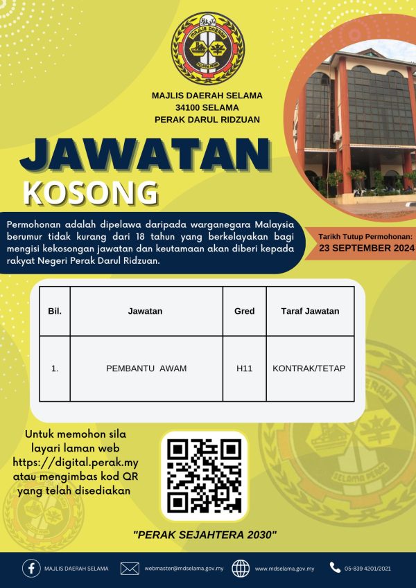 Iklan Kini Jawatan Kosong Majlis Daerah Selama Klik Jawatan Disini Like serta Ikut Facebook Kami, follow Chanel WhatsApp Jawatan Kosong & Telegram Portal SPA9 untuk capaian pantas kekosongan jawatan daripada kami sekarang.