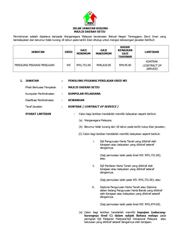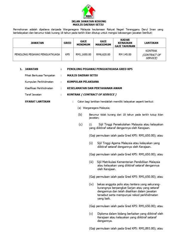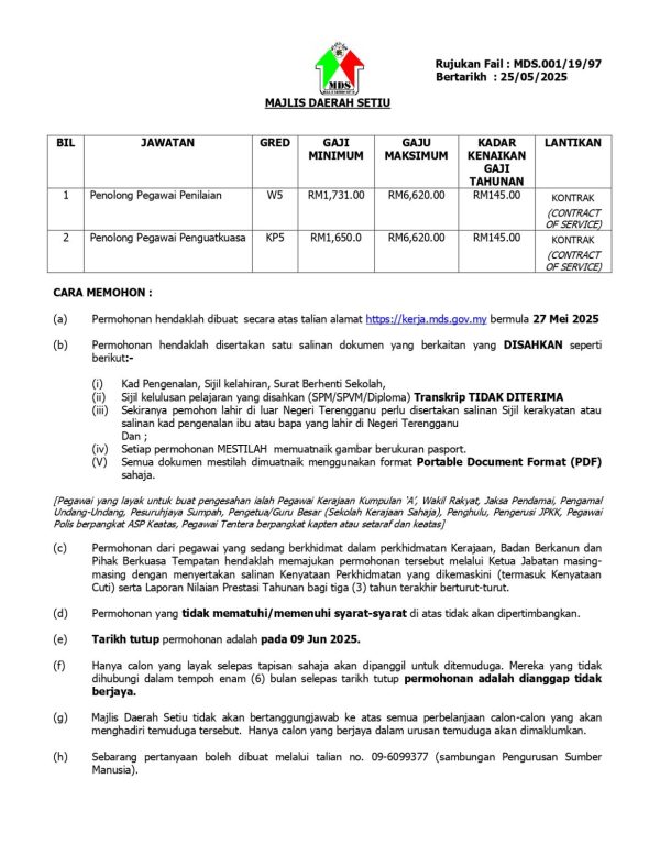 Iklan Kini Jawatan Kosong Majlis Daerah Setiu Like serta Ikut Facebook Kami, follow Chanel WhatsApp Jawatan Kosong & Telegram Portal SPA9 untuk capaian pantas kekosongan jawatan daripada kami sekarang. Klik Jawatan Disini