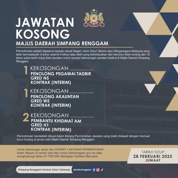 Iklan Kini Jawatan Kosong Majlis Daerah Simpang Renggam Like serta Ikut Facebook Kami, follow Chanel WhatsApp Jawatan Kosong & Telegram Portal SPA9 untuk capaian pantas kekosongan jawatan daripada kami sekarang. Klik Jawatan Disini
