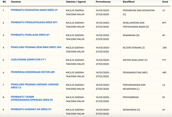 Iklan Kini Jawatan Kosong Majlis Daerah Tanjong Malim Klik Jawatan Disini Like serta Ikut Facebook Kami, follow Chanel WhatsApp Jawatan Kosong & Telegram Portal SPA9 untuk capaian pantas kekosongan jawatan daripada kami sekarang.