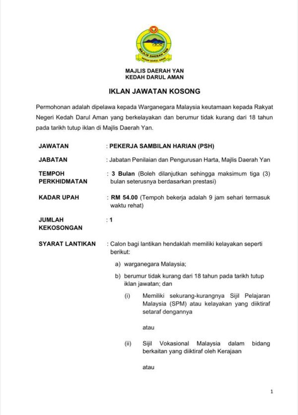 Iklan Kini Jawatan Kosong Majlis Daerah Yan Klik Jawatan Disini Like serta Ikut Facebook Kami, follow Chanel WhatsApp Jawatan Kosong & Telegram Portal SPA9 untuk capaian pantas kekosongan jawatan daripada kami sekarang.