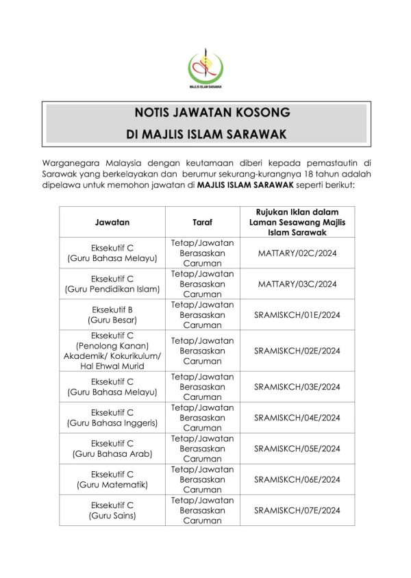 Iklan Kini Jawatan Kosong Majlis Islam Sarawak Like serta Ikut Facebook Kami, follow Chanel WhatsApp Jawatan Kosong & Telegram Portal SPA9 untuk capaian pantas kekosongan jawatan daripada kami sekarang. Klik Jawatan Disini
