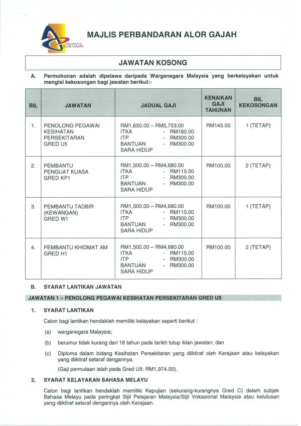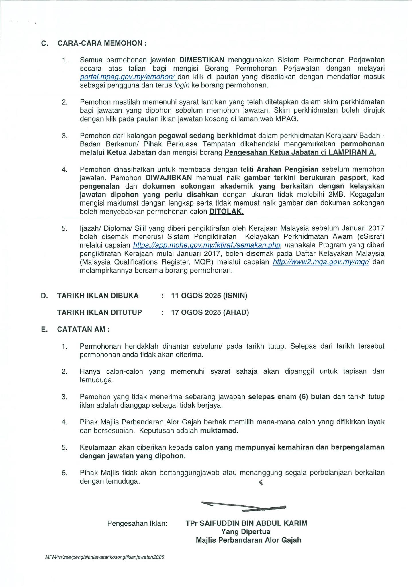 Iklan kini Jawatan Kosong Majlis Perbandaran Alor Gajah (MPAG) Klik Jawatan Disini Like serta Ikut Facebook Kami, follow Chanel WhatsApp Jawatan Kosong & Telegram Portal SPA9 untuk capaian pantas kekosongan jawatan daripada kami sekarang.