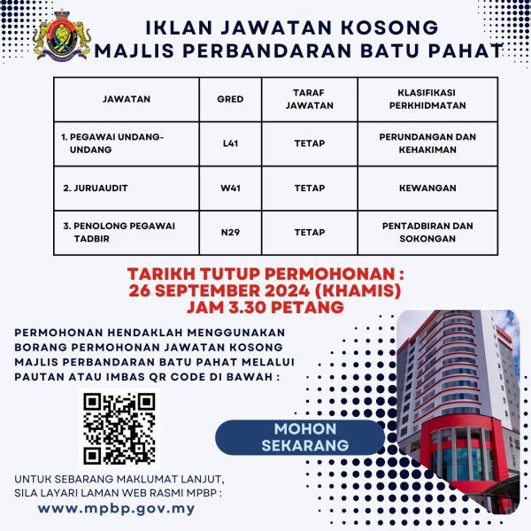 Iklan Kini Jawatan Kosong Majlis Perbandaran Batu Pahat (MPBP) Like serta Ikut Facebook Kami, follow Chanel WhatsApp Jawatan Kosong & Telegram Portal SPA9 untuk capaian pantas kekosongan jawatan daripada kami sekarang. Klik Iklan Jawatan Disini
