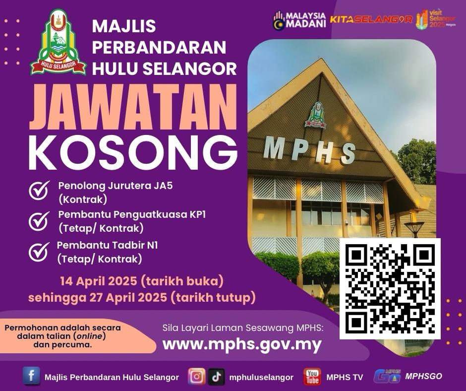 Iklan Kini Jawatan Kosong Majlis Perbandaran Hulu Selangor Klik Jawatan Disini Like serta Ikut Facebook Kami, follow Chanel WhatsApp Jawatan Kosong & Telegram Portal SPA9 untuk capaian pantas kekosongan jawatan daripada kami sekarang.