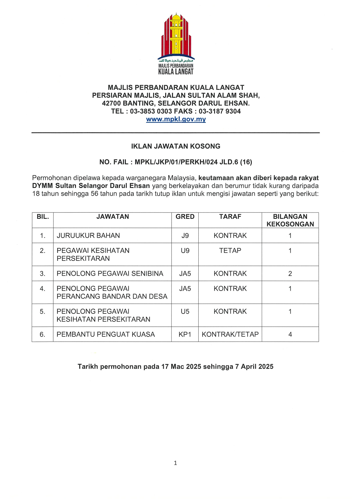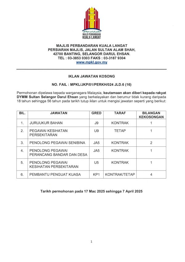Iklan Kini Jawatan Kosong Majlis Perbandaran Kuala Langat Like serta Ikut Facebook Kami, follow Chanel WhatsApp Jawatan Kosong & Telegram Portal SPA9 untuk capaian pantas kekosongan jawatan daripada kami sekarang. Klik Jawatan Disini