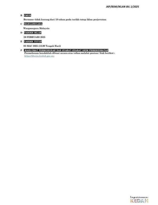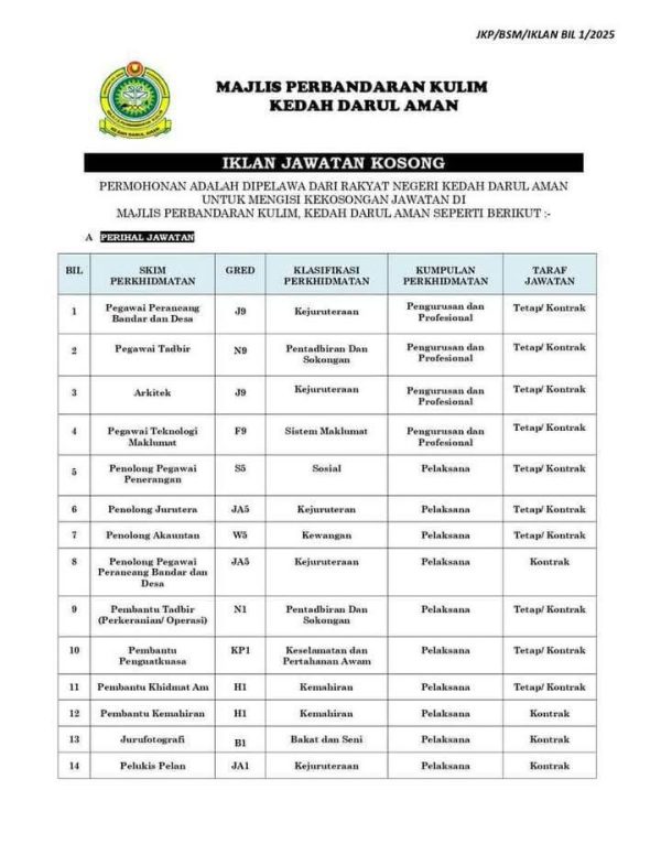 Iklan Kini Jawatan Kosong Majlis Perbandaran Kulim