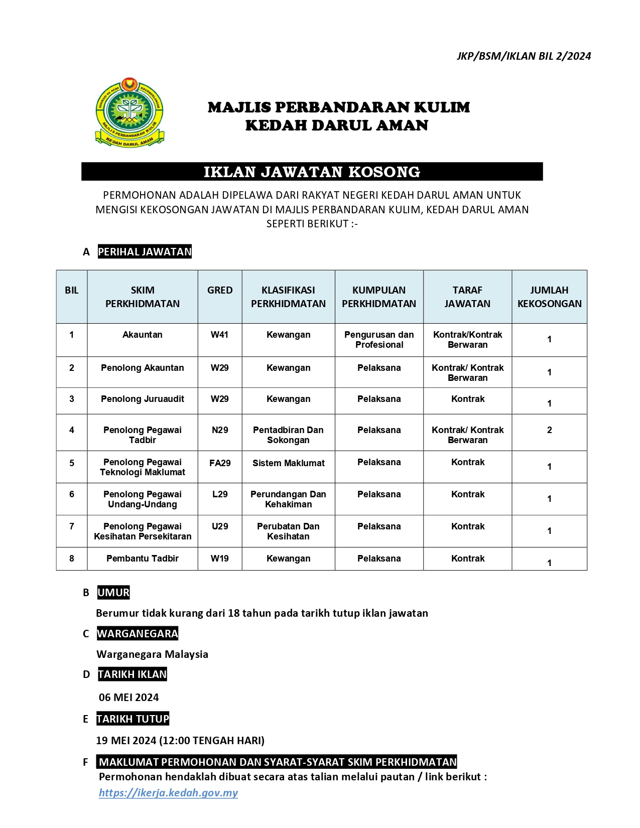 Iklan Kini Jawatan Kosong Majlis Perbandaran Kulim Like serta Ikut Facebook Kami, follow Chanel WhatsApp Jawatan Kosong & Telegram Portal SPA9 untuk capaian pantas kekosongan jawatan daripada kami sekarang.