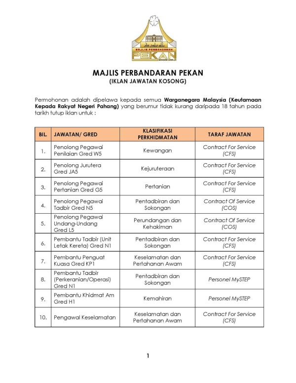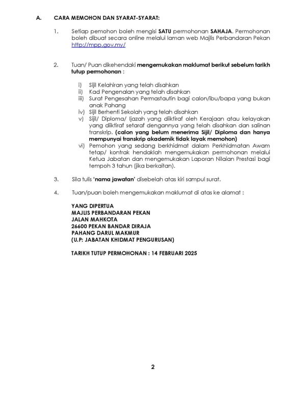 Iklan Kini Jawatan Kosong Majlis Perbandaran Pekan Like serta Ikut Facebook Kami, follow Chanel WhatsApp Jawatan Kosong & Telegram Portal SPA9 untuk capaian pantas kekosongan jawatan daripada kami sekarang. Klik Iklan Jawatan