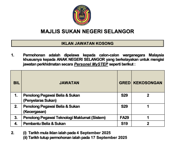 Iklan Kini Jawatan Kosong Majlis Sukan Negeri Selangor (MSN Selangor) Like serta Ikut Facebook Kami, follow Chanel WhatsApp Jawatan Kosong & Telegram Portal SPA9 untuk capaian pantas kekosongan jawatan daripada kami sekarang. Klik Iklan Disini