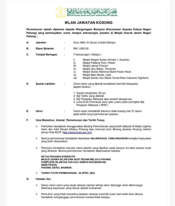 Iklan Kini Jawatan Kosong Majlis Ugama Islam dan Adat Resam Melayu Pahang (MUIP) Like serta Ikut Facebook Kami, follow Chanel WhatsApp Jawatan Kosong & Telegram Portal SPA9 untuk capaian pantas kekosongan jawatan daripada kami sekarang.
