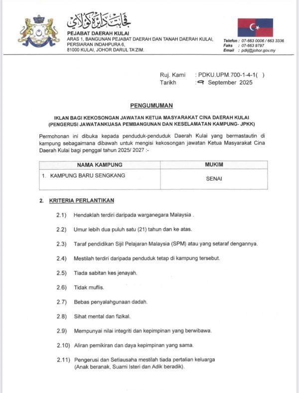 Iklan Kini Jawatan Kosong Pejabat Daerah Kulai Like serta Ikut Facebook Kami, follow Chanel WhatsApp Jawatan Kosong & Telegram Portal SPA9 untuk capaian pantas kekosongan jawatan daripada kami sekarang. Klik Iklan Disini