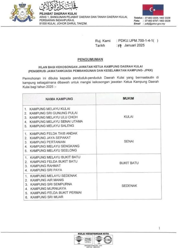 Iklan Kini Jawatan Kosong Pejabat Daerah Kulai Like serta Ikut Facebook Kami, follow Chanel WhatsApp Jawatan Kosong & Telegram Portal SPA9 untuk capaian pantas kekosongan jawatan daripada kami sekarang. Klik Iklan Jawatan
