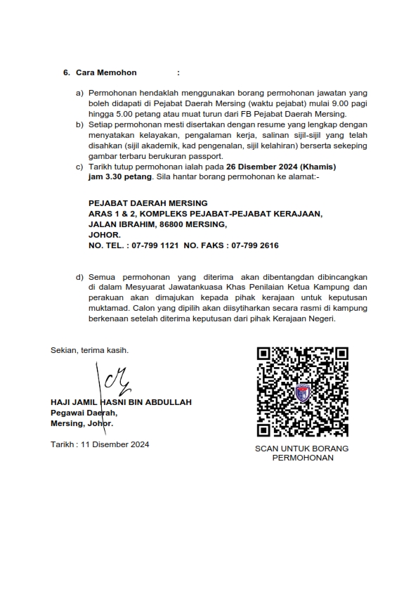 Iklan Kini Jawatan Kosong Pejabat Daerah Mersing Like serta Ikut Facebook Kami, follow Chanel WhatsApp Jawatan Kosong & Telegram Portal SPA9 untuk capaian pantas kekosongan jawatan daripada kami sekarang. Klik Iklan Jawatan