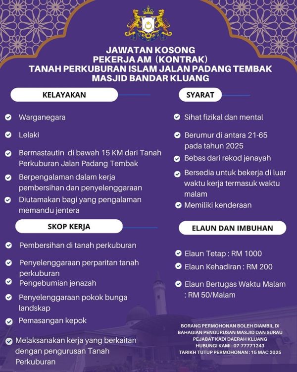 Iklan Kini Jawatan Kosong Pejabat Kadi Daerah Kluang Like serta Ikut Facebook Kami, follow Chanel WhatsApp Jawatan Kosong & Telegram Portal SPA9 untuk capaian pantas kekosongan jawatan daripada kami sekarang. Klik Jawatan Disini