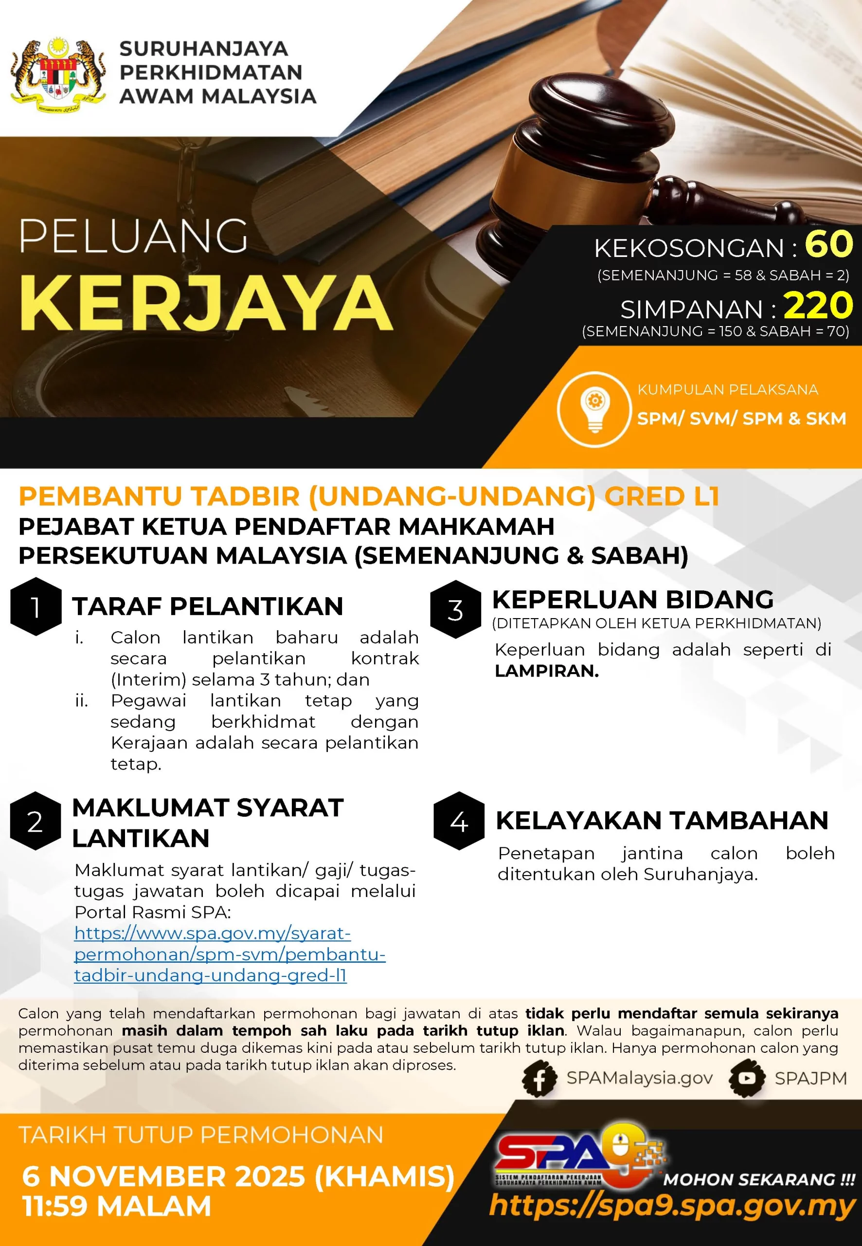 Iklan Kini Jawatan Kosong Pejabat Ketua Pendaftar Mahkamah Persekutuan Klik Jawatan Disini Like serta Ikut Facebook Kami, follow Chanel WhatsApp Jawatan Kosong & Telegram Portal SPA9 untuk capaian pantas kekosongan jawatan daripada kami sekarang.