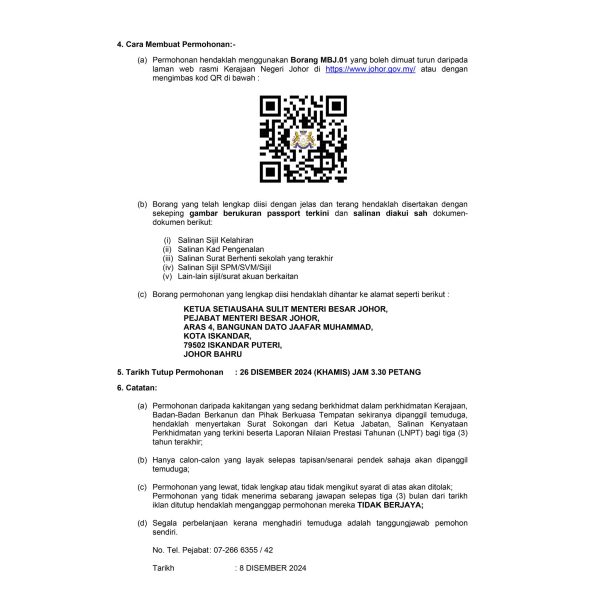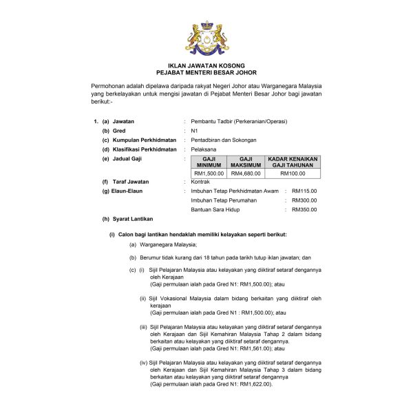 Iklan Kini Jawatan Kosong Pejabat Menteri Besar Johor