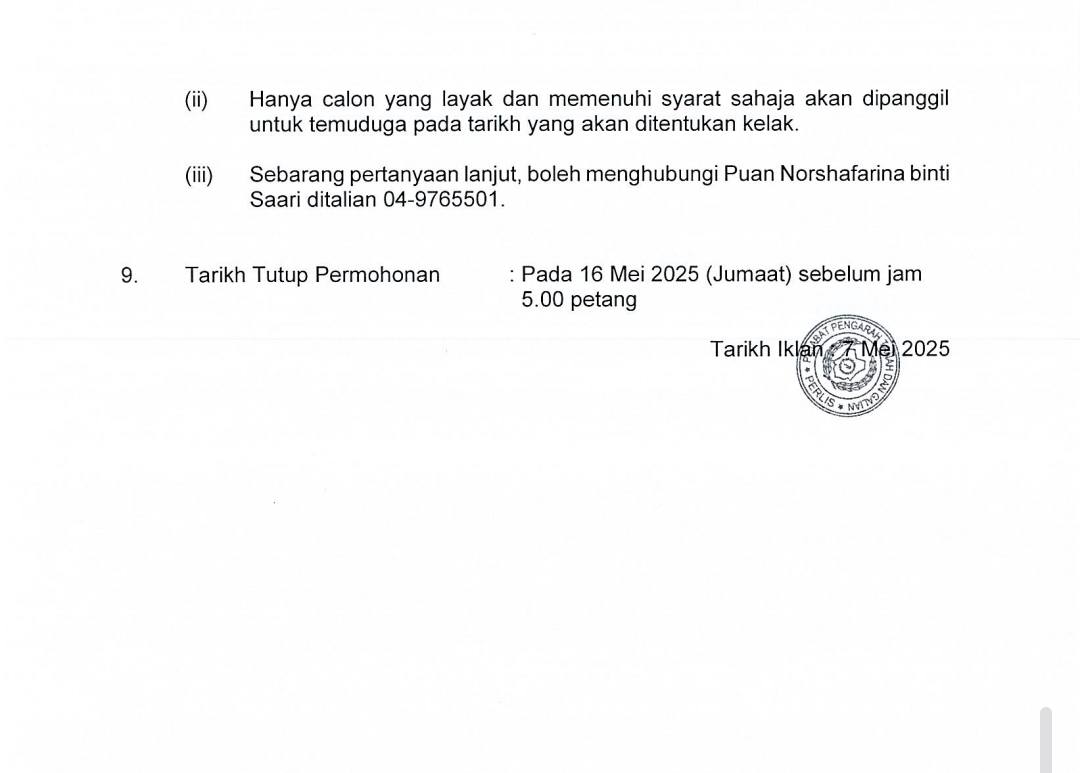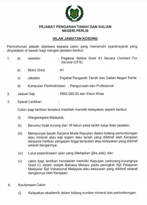 Iklan KIni Jawatan Kosong Pejabat Pengarah Tanah dan Galian Negeri Perlis Klik Jawatan Disini Like serta Ikut Facebook Kami, follow Chanel WhatsApp Jawatan Kosong & Telegram Portal SPA9 untuk capaian pantas kekosongan jawatan daripada kami sekarang.