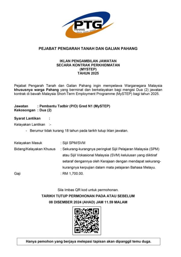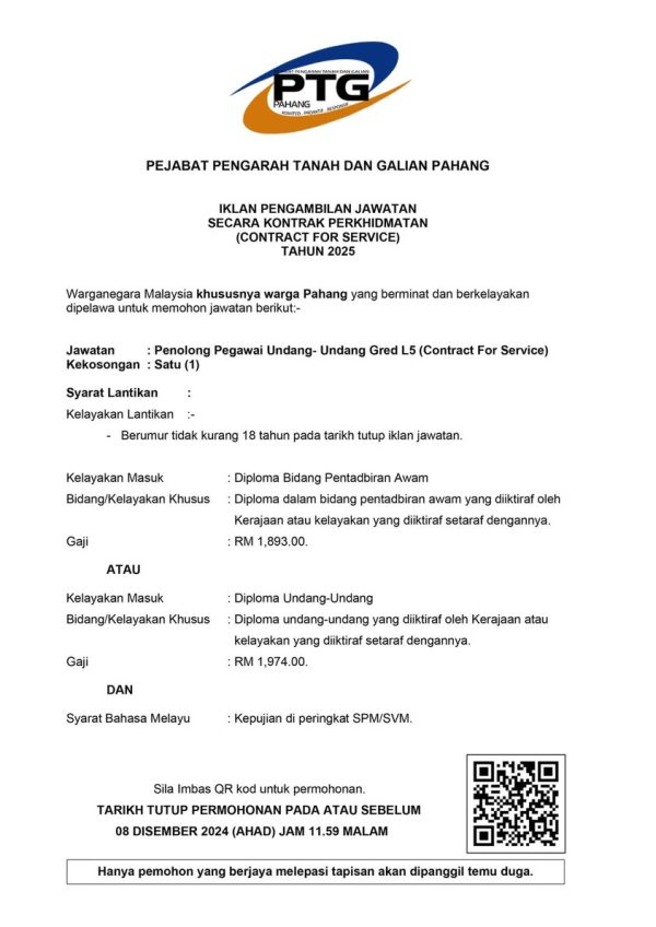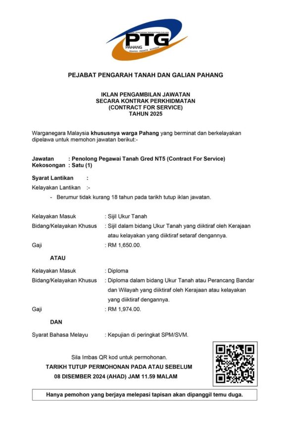 Iklan Kini Jawatan Kosong Pejabat Pengarah Tanah dan Galian Pahang Like serta Ikut Facebook Kami, follow Chanel WhatsApp Jawatan Kosong & Telegram Portal SPA9 untuk capaian pantas kekosongan jawatan daripada kami sekarang. Klik Iklan Jawatan
