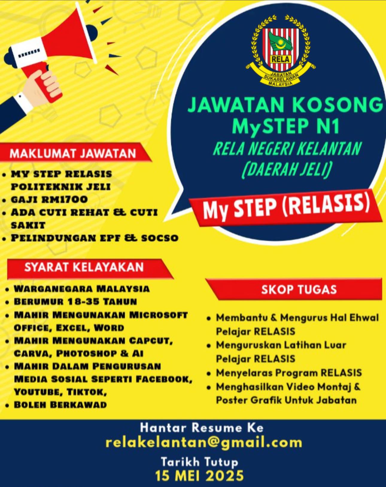 Iklan Kini Jawatan Kosong Pejabat Rela Daerah Jeli Klik Jawatan Disini Like serta Ikut Facebook Kami, follow Chanel WhatsApp Jawatan Kosong & Telegram Portal SPA9 untuk capaian pantas kekosongan jawatan daripada kami sekarang.