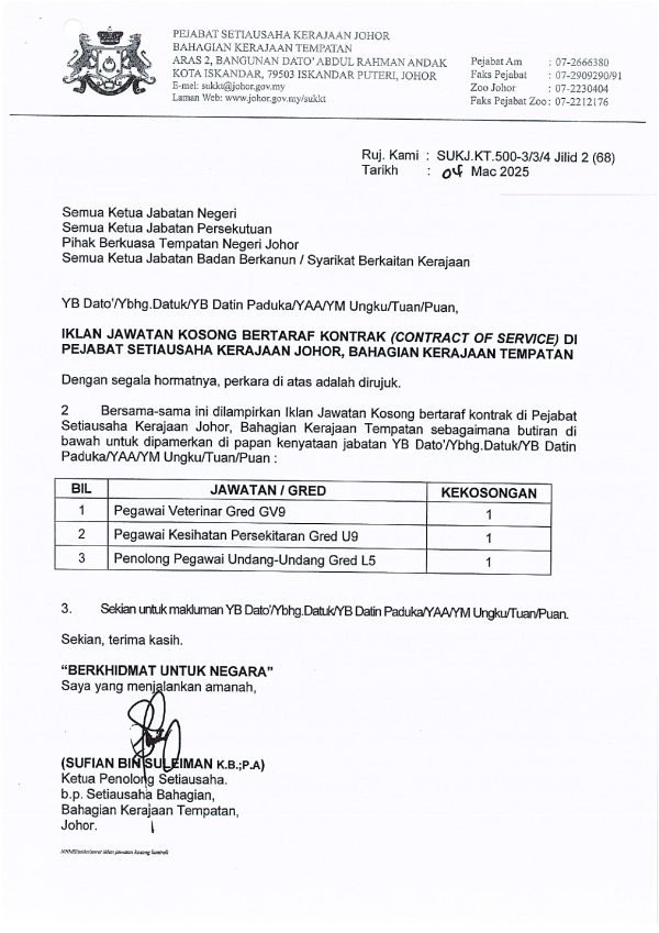 Iklan Kini Jawatan Kosong Pejabat Setiausaha Kerajaan Johor Like serta Ikut Facebook Kami, follow Chanel WhatsApp Jawatan Kosong & Telegram Portal SPA9 untuk capaian pantas kekosongan jawatan daripada kami sekarang. Klik Jawatan Disini