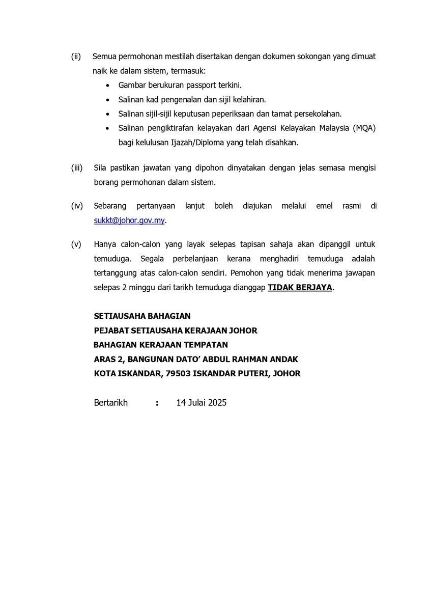 Iklan Kini Jawatan Kosong Pejabat Setiausaha Kerajaan Johor Like serta Ikut Facebook Kami, follow Chanel WhatsApp Jawatan Kosong & Telegram Portal SPA9 untuk capaian pantas kekosongan jawatan daripada kami sekarang. Klik Jawatan Disini