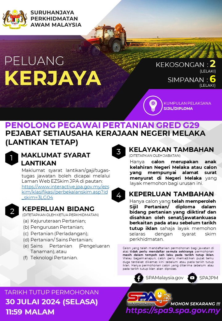 Iklan Kini Jawatan Kosong Pejabat Setiausaha Kerajaan Negeri Melaka Like serta Ikut Facebook Kami, follow Chanel WhatsApp Jawatan Kosong & Telegram Portal SPA9 untuk capaian pantas kekosongan jawatan daripada kami sekarang. Klik Jawatan Disini