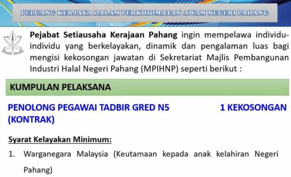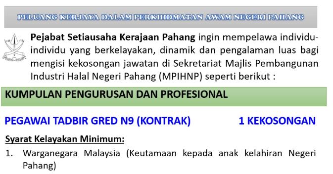 Iklan Kini Jawatan Kosong Pejabat Setiausaha Kerajaan Negeri Pahang Klik Jawatan Disini Like serta Ikut Facebook Kami, follow Chanel WhatsApp Jawatan Kosong & Telegram Portal SPA9 untuk capaian pantas kekosongan jawatan daripada kami sekarang.