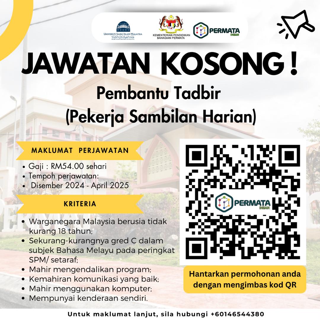 Iklan Kini Jawatan Kosong Pekerja Sambilan Harian (Psh) Di Kolej Permata Insan, Usim Like serta Ikut Facebook Kami, follow Chanel WhatsApp Jawatan Kosong & Telegram Portal SPA9 untuk capaian pantas kekosongan jawatan daripada kami sekarang.
