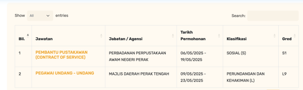 Iklan Kini Jawatan Kosong Pelbagai Jabatan / Agensi Kerajaan Negeri Perak