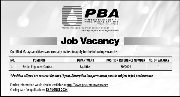 Iklan Kini Jawatan Kosong Perbadanan Bekalan Air Pulau Pinang Sdn Bhd PBA_NST_7x4_290724 Like serta Ikut Facebook Kami, follow Chanel WhatsApp Jawatan Kosong & Telegram Portal SPA9 untuk capaian pantas kekosongan jawatan daripada kami sekarang.