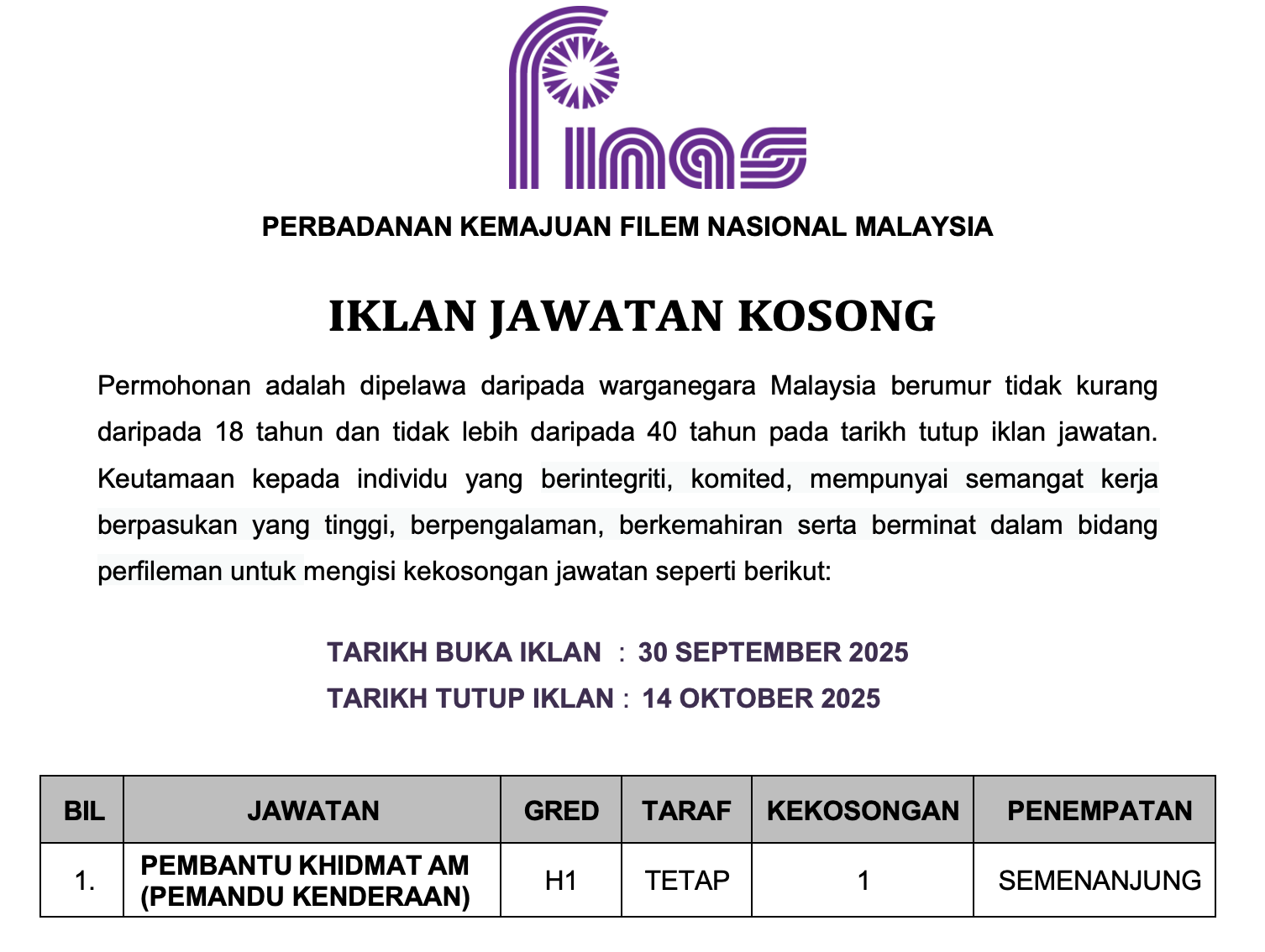 Iklan Kini Jawatan Kosong Perbadanan Kemajuan Filem Nasional Malaysia (FINAS) Like serta Ikut Facebook Kami, follow Chanel WhatsApp Jawatan Kosong & Telegram Portal SPA9 untuk capaian pantas kekosongan jawatan daripada kami sekarang. Klik Iklan Jawatan