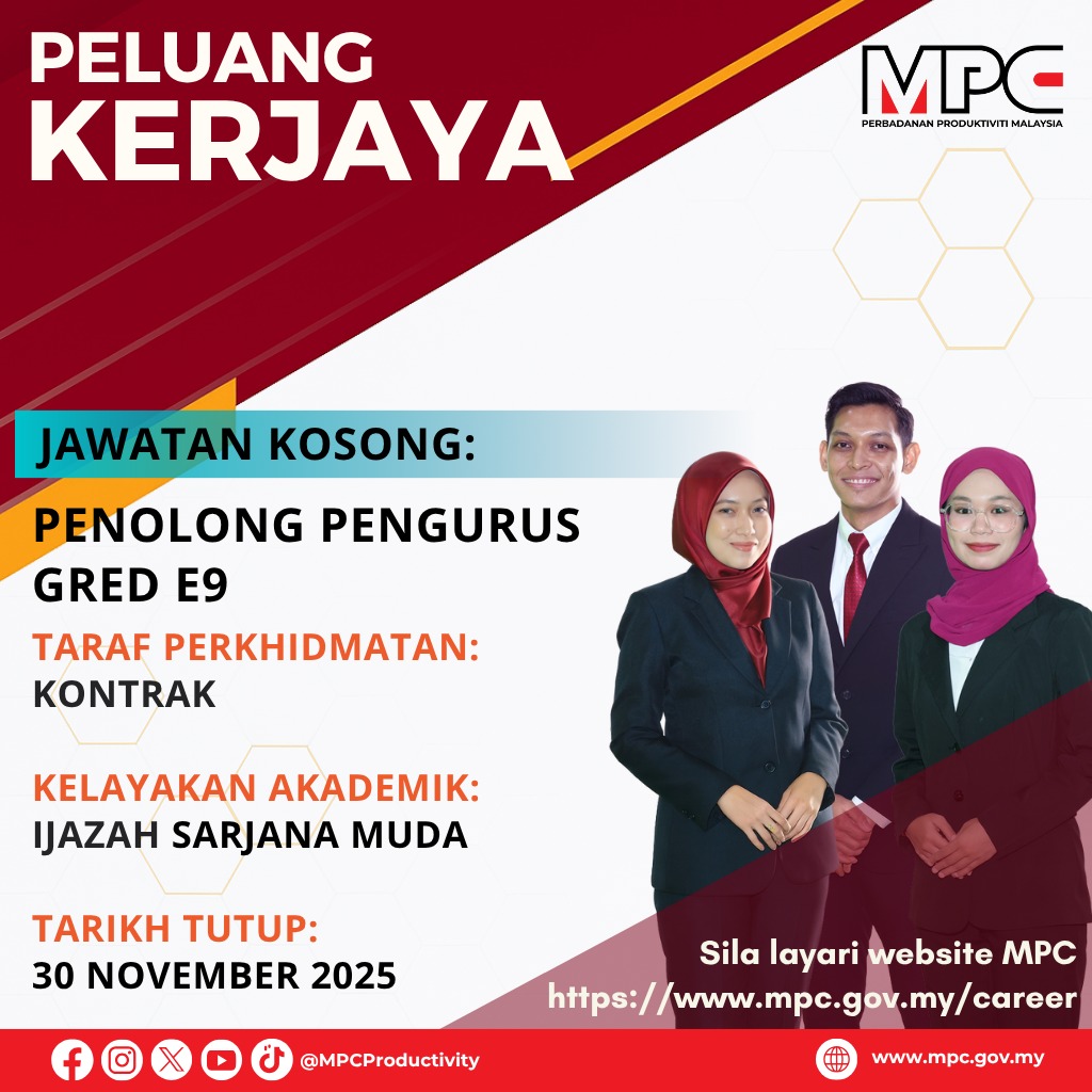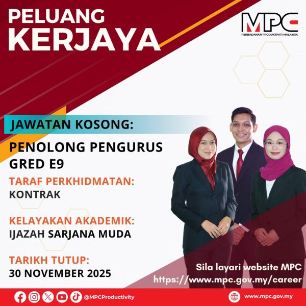 Iklan Kini Jawatan Kosong Perbadanan Produktiviti Malaysia (MPC) Like serta Ikut Facebook Kami, follow Chanel WhatsApp Jawatan Kosong & Telegram Portal SPA9 untuk capaian pantas kekosongan jawatan daripada kami sekarang. Klik Iklan Jawatan