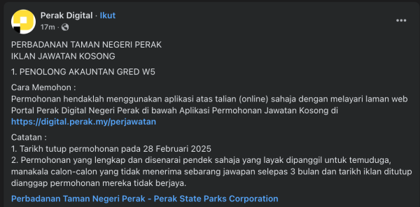 Iklan KIni Jawatan Kosong Perbadanan Taman Negeri Perak Like serta Ikut Facebook Kami, follow Chanel WhatsApp Jawatan Kosong & Telegram Portal SPA9 untuk capaian pantas kekosongan jawatan daripada kami sekarang. Klik Jawatan Disini