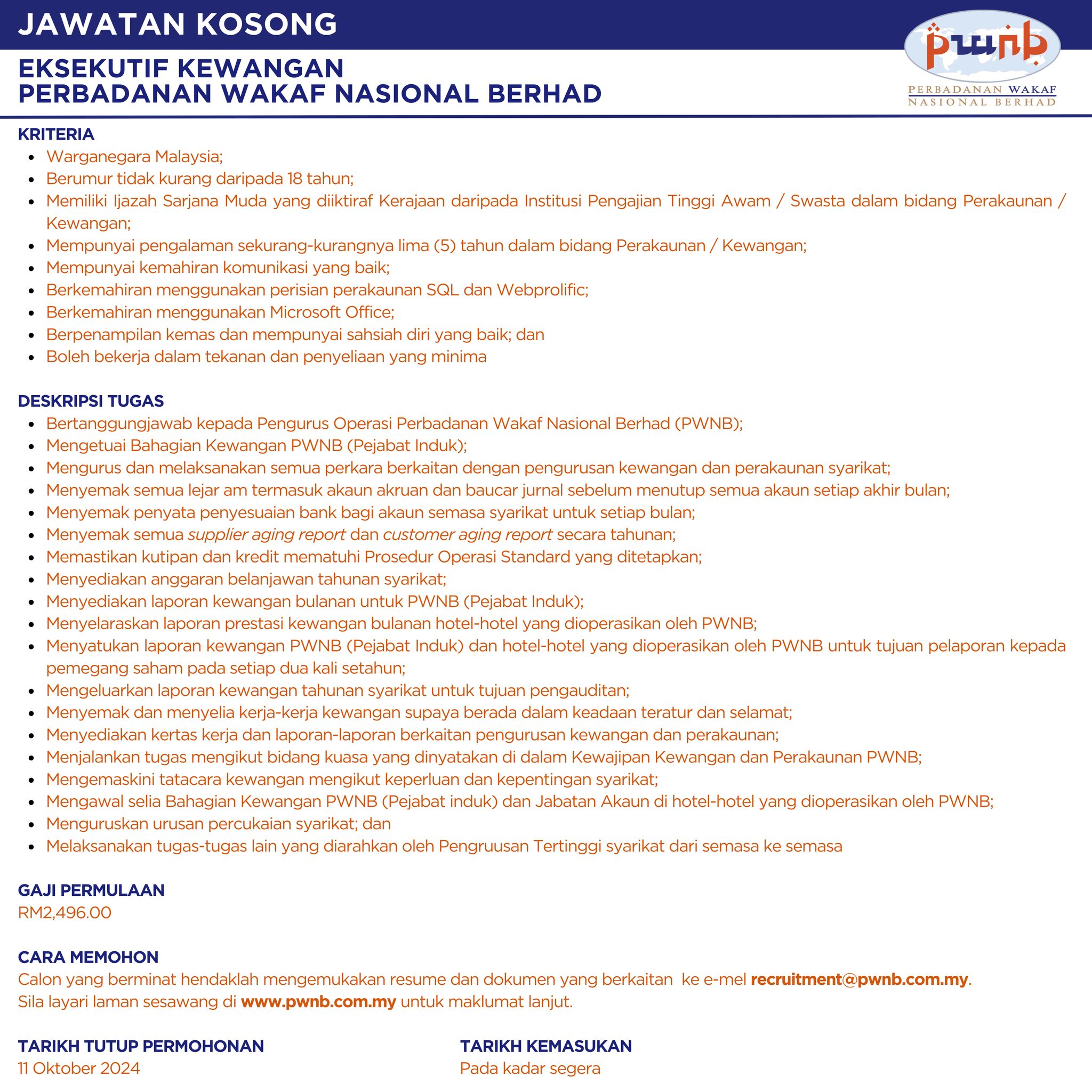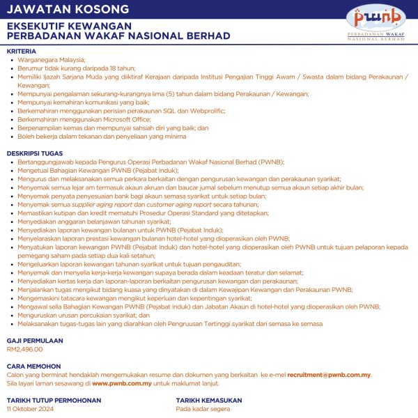 Iklan Kini Jawatan Kosong Perbadanan Wakaf Nasional Berhad Like serta Ikut Facebook Kami, follow Chanel WhatsApp Jawatan Kosong & Telegram Portal SPA9 untuk capaian pantas kekosongan jawatan daripada kami sekarang. Klik Jawatan Disini