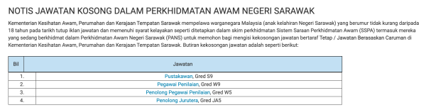 Iklan Kini Jawatan Kosong Perkhidmatan Awam Negeri Sarawak (PANS) Like serta Ikut Facebook Kami, follow Chanel WhatsApp Jawatan Kosong & Telegram Portal SPA9 untuk capaian pantas kekosongan jawatan daripada kami sekarang. Klik Jawatan Disini