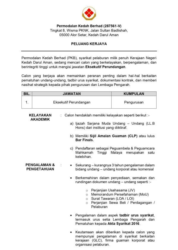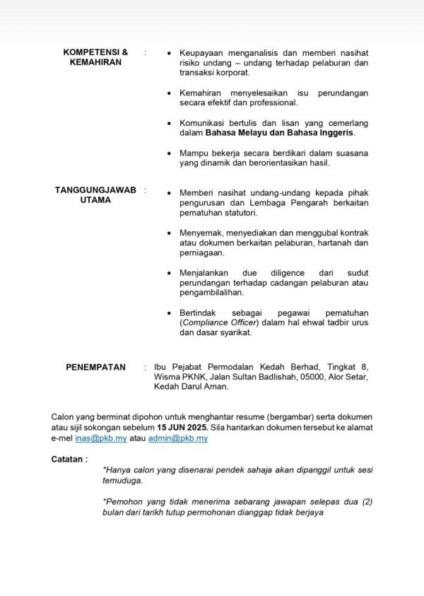 Iklan Kini Jawatan Kosong Permodalan Kedah Berhad (PKB) Like serta Ikut Facebook Kami, follow Chanel WhatsApp Jawatan Kosong & Telegram Portal SPA9 untuk capaian pantas kekosongan jawatan daripada kami sekarang.
