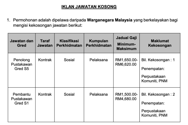 Iklan Kini Jawatan Kosong Perpustakaan Negara Malaysia Klik Jawatan Disini Like serta Ikut Facebook Kami, follow Chanel WhatsApp Jawatan Kosong & Telegram Portal SPA9 untuk capaian pantas kekosongan jawatan daripada kami sekarang.