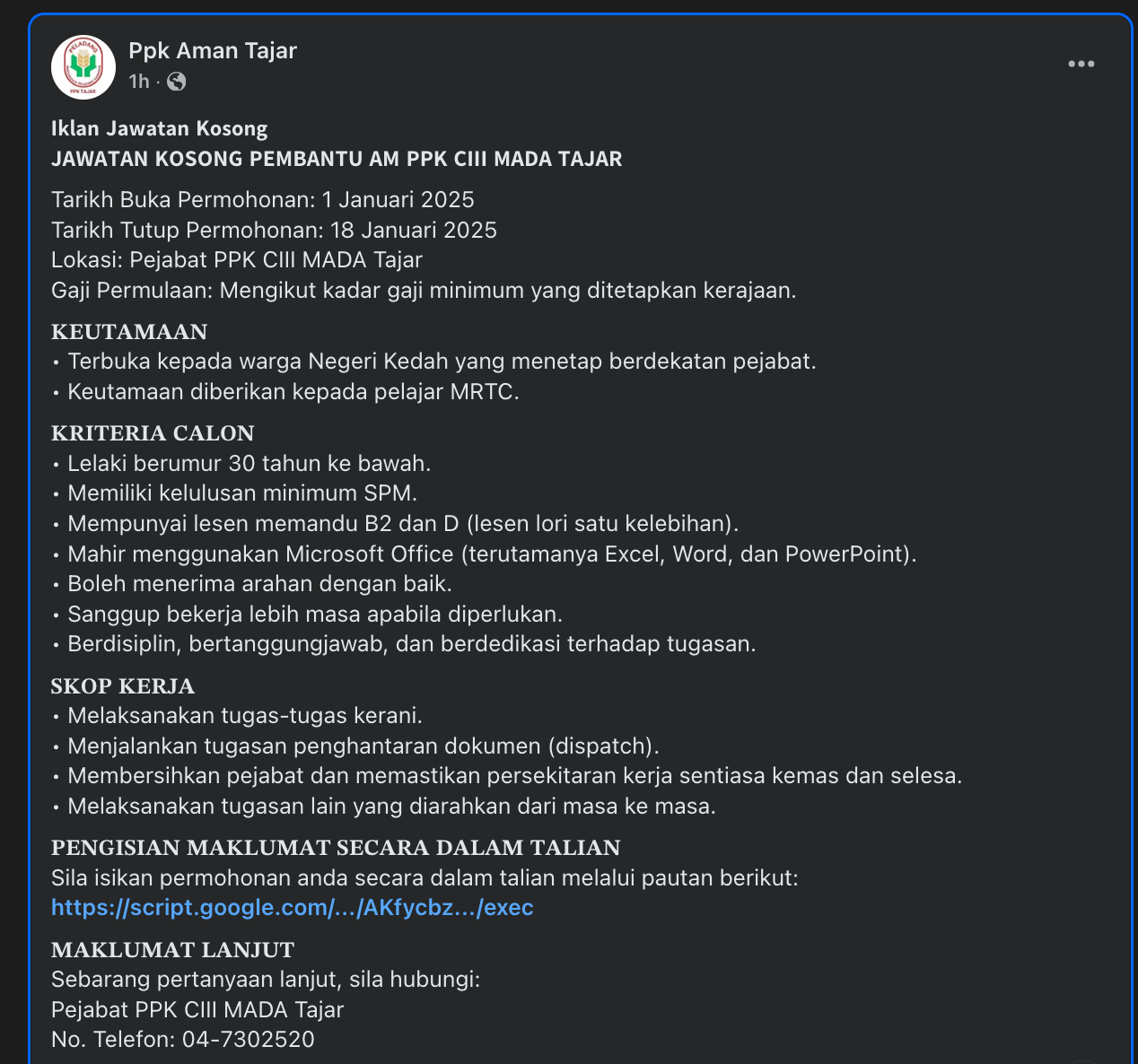 Iklan Kini Jawatan Kosong Pertubuhan Peladang Kawasan Tajar Like serta Ikut Facebook Kami, follow Chanel WhatsApp Jawatan Kosong & Telegram Portal SPA9 untuk capaian pantas kekosongan jawatan daripada kami sekarang. Klik Iklan Jawatan